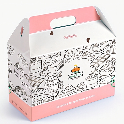 Giấy gợn sóng Kraft hộp đầu hồi bao bì có thể tái chế Cà Phê Bánh tùy chỉnh hộp đầu hồi màu hồng có tay cầm